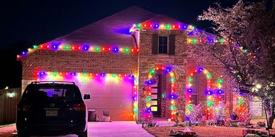 We use high-quality commercial LED lights for a stunning and energy-efficient display! Our custom-cut fitting installation ensures a seamless look without the hassle of hanging traditional lights. This means you get a beautifully illuminated home that stands out in the neighborhood while enjoying a hassle-free setup and takedown.